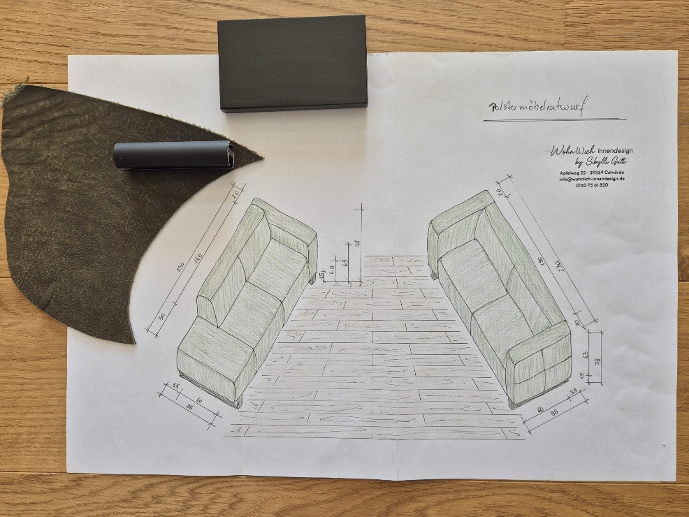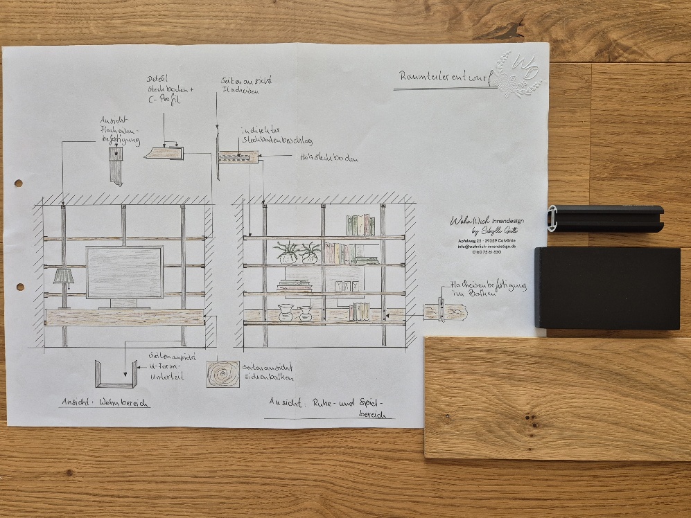 - Begleitung bei Materialauswahl, Budgetkontrolle und Einkauf bis zur Fertigstellung